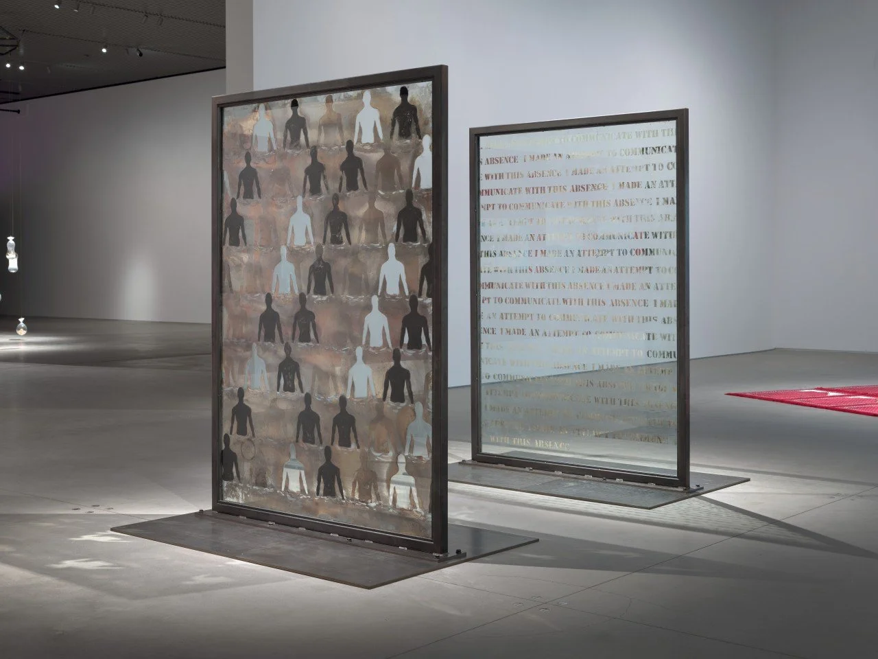 Mixed media on tempered glass, steel armature